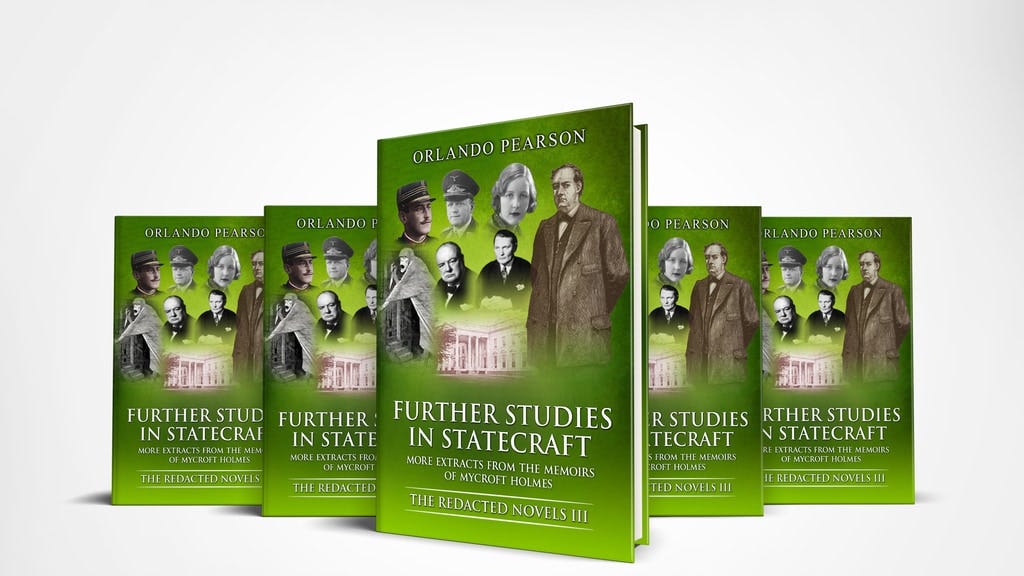 Read in Further Studies in Statecraft how Mycroft turns the Ripper and the Dreyfus affairs to Great Britain's advantage, extends the political career of Winston Churchill, deals with Hitler's girlfriends and his only Jewish Field-Marshal, and bests American President, Ronald Crump, in a trade negotiation.